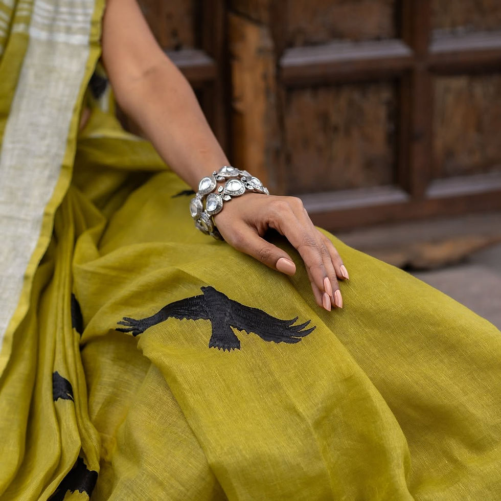 And so, our brand was born. We work closely with local tribal weavers, providing them with a platform to showcase their craftsmanship and generate a sustainable income. Our mission is to empower these artisans, preserve their traditional crafts, and promote sustainable fashion practices. Our debut collection, Bageecha, is inspired by the enchantment of the forest. The minimalist design sarees are designed to help women stand out with confidence, while celebrating the beauty of nature.